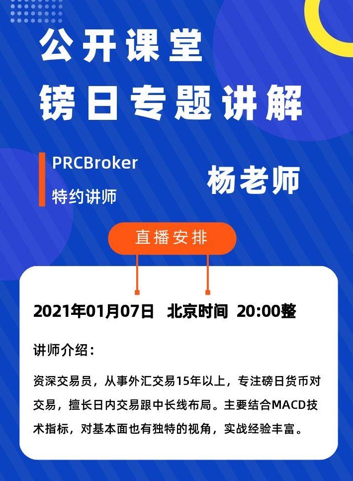 | 2021/01/07 | 星期四 | 20:00 | 磅日专题讲解 | 杨老师 |